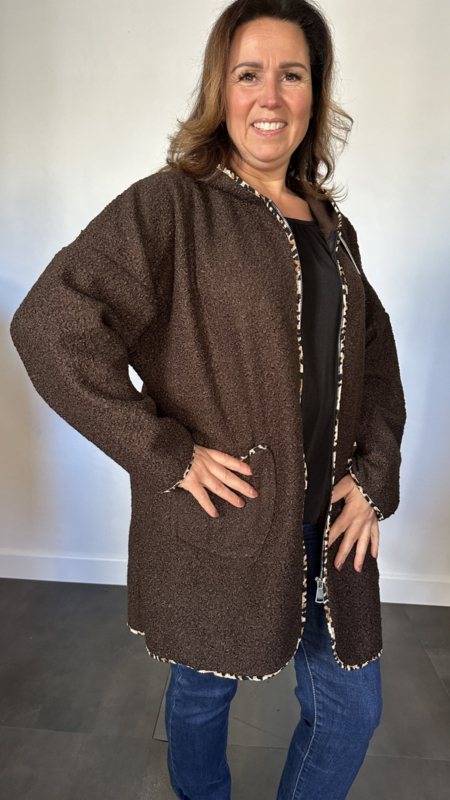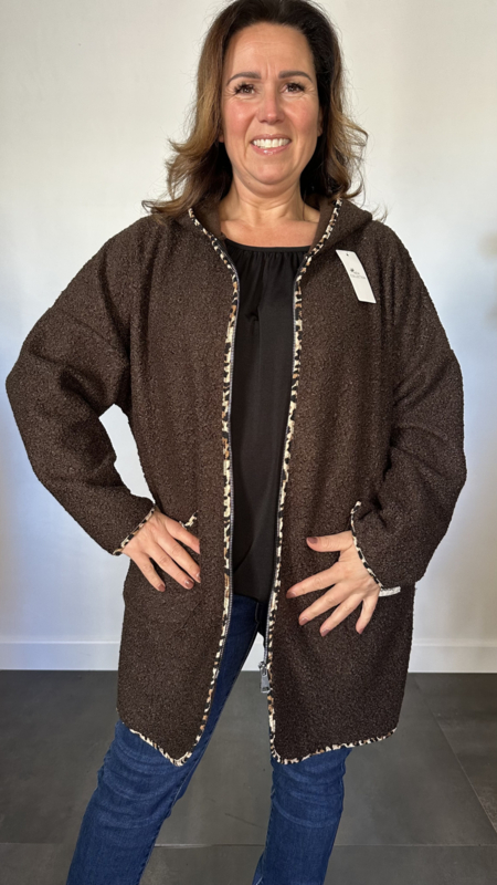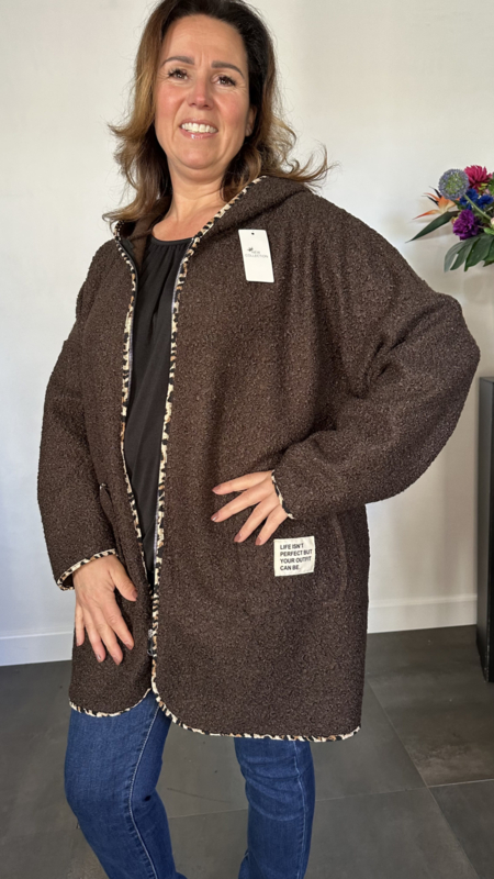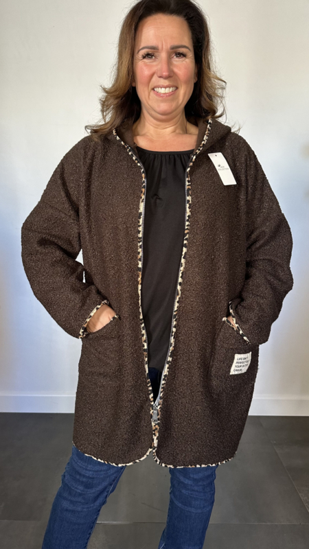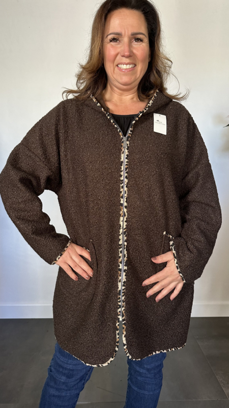 Dit stijlvolle teddy vest met capuchon is een must-have voor de koelere dagen.Voorzien van een handige ritssluiting en 2 praktische zakken aan de voorkant. Het vest is afgezet met een panter bies.