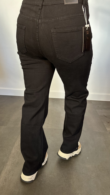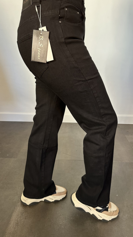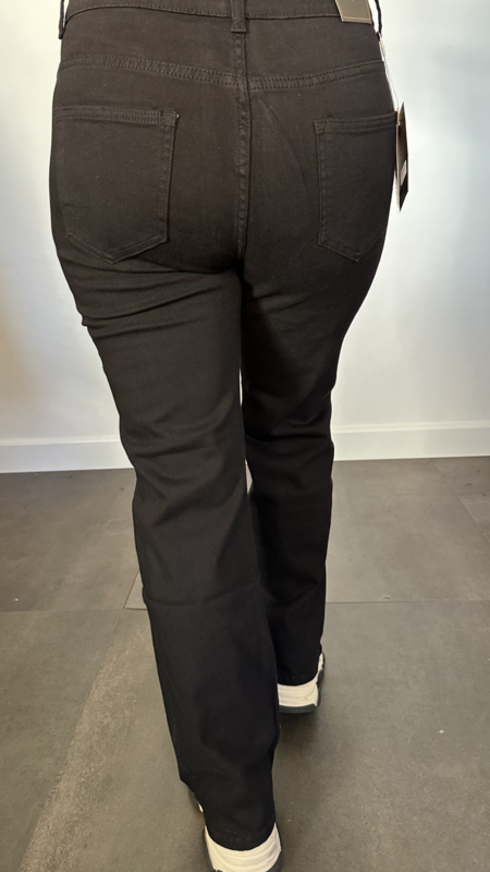 Hoog model jeans met fijne stretch met 2 zakken voor en achter in wide leg model.valt ruim boven de navel .