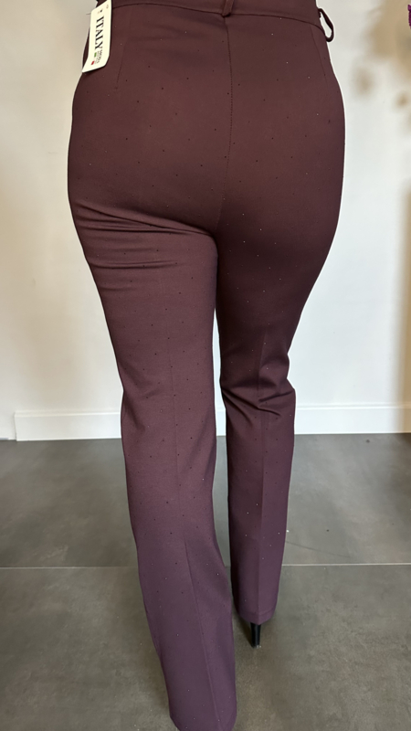 Stijlvolle pantalon met zwarte glitters . De pantalon is gemaakt van stevige stretch stof van een dikkere kwaliteit en valt hoog in de taille. Hierdoor heeft de pantalon een mooie pasvorm. Met rits en knoopsltuiling en 2 steekzakken. (geen garantie op de glitters.)