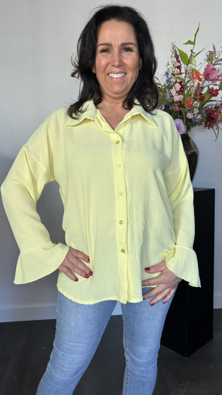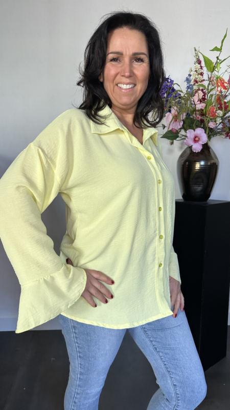 Crepe blouse met kraag, knoopsluiting en trompet mouwen.