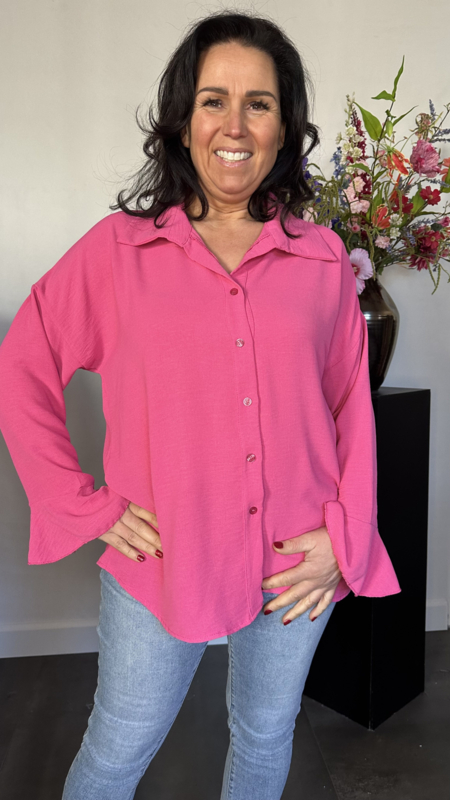 Crepe blouse met kraag, knoopsluiting en trompet mouwen.