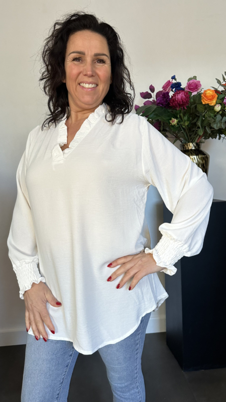 Crepe blouse Leonie met ruche Ecru