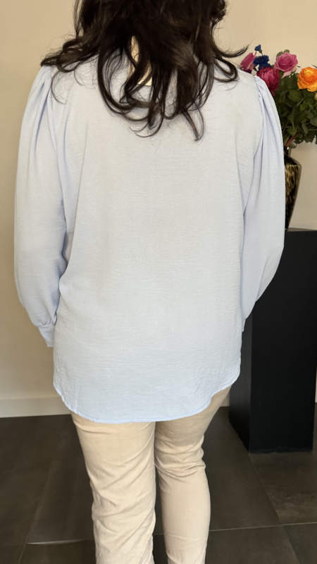 Crepe blouse met v-hals en pofmouw IJsblauw