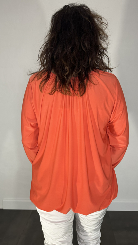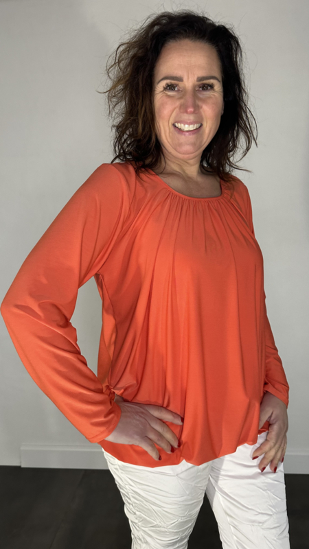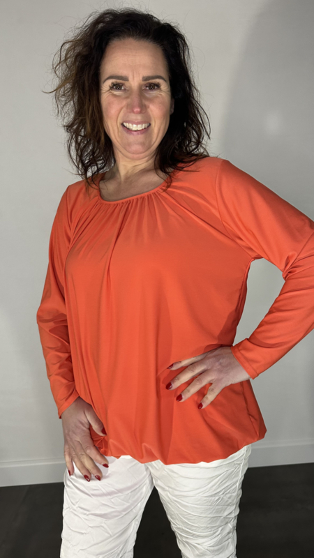 Ballon shirt met elastiek onderin , gemaakt van soepele gladde stretch stof, met lange mouw.