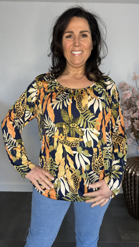 Ballon shirt met elastiek Panter palm marine