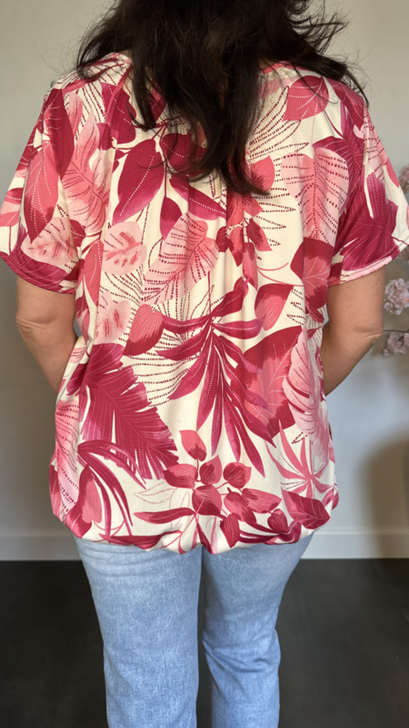 Ballon shirt met elastiek Leaves fuchsia