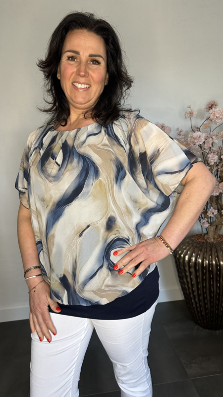 Blouse met boord Marble marine