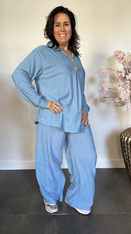 2-Delig comfy pak Sunny ribbel Jeans blauw SALE