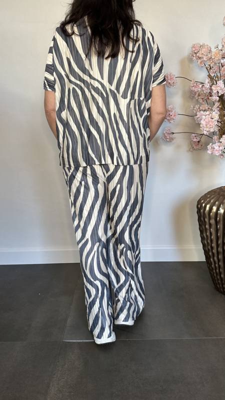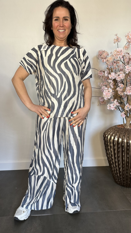 2-Delig comfy pak plissé Zebra Staalblauw SALE