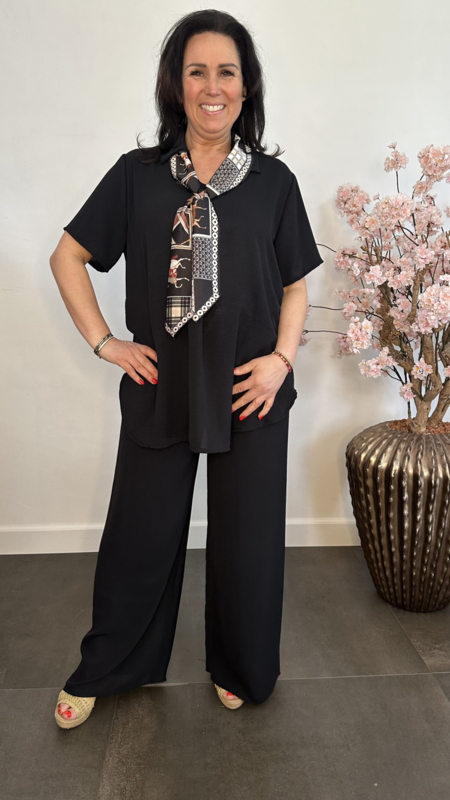 Vlotte blazer met gesmokte mouw, sjaalkraag en schoudervulling. De blazer is gevoerd en heeft 2 nep zakjes.