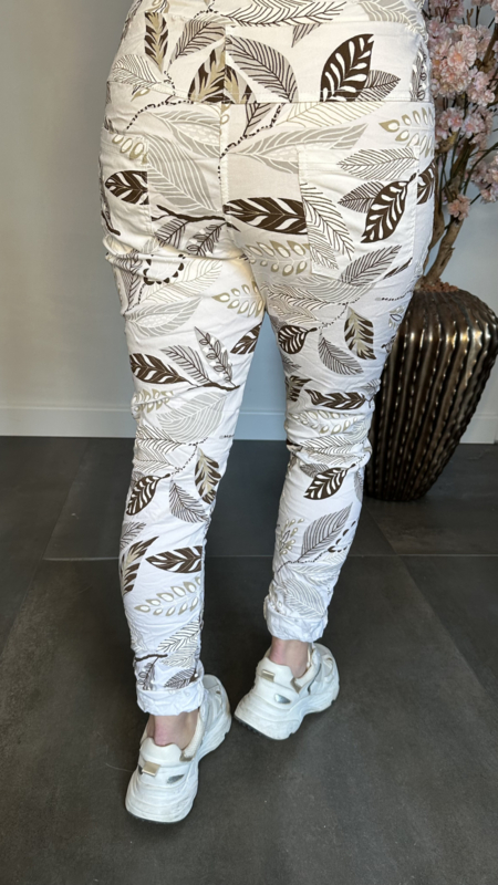 Comfy joggjeans van soepele stretch stof met elastische tailleband en 2 zakken voor én achter. In multi color botanische print.