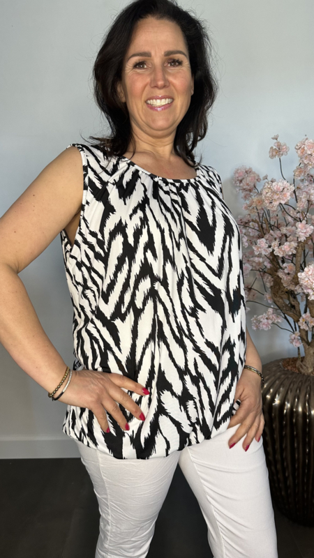 Ballon top scratched zebra zwart/wit