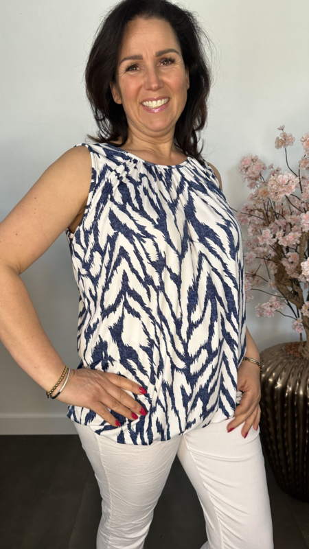 Mouwloze ballon top van soepele gladde stretch stof. Met elastiek onderin.