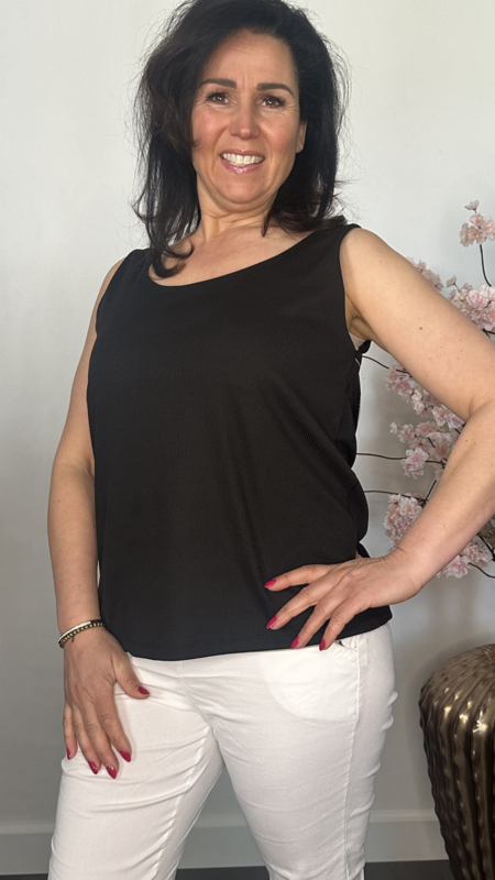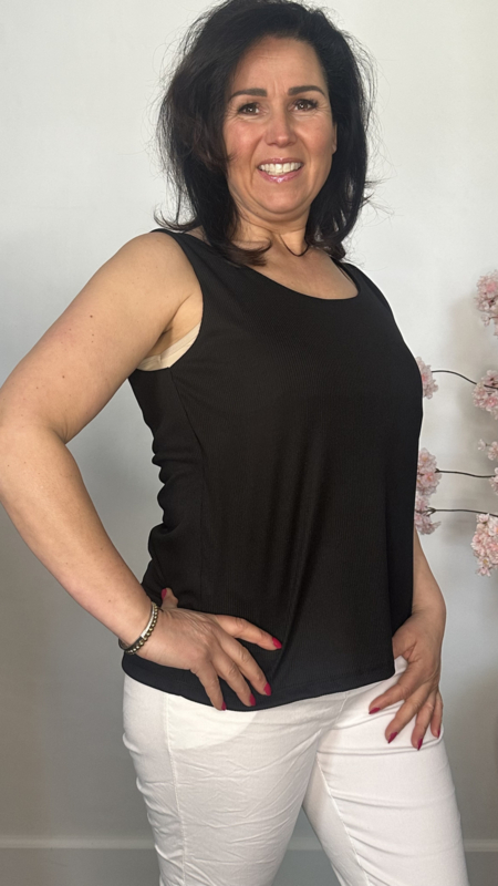 Hemd met brede schouderband ribbel Zwart
