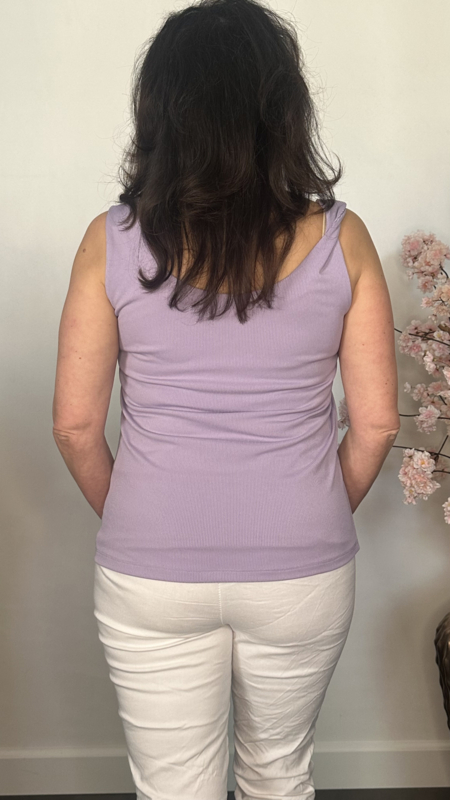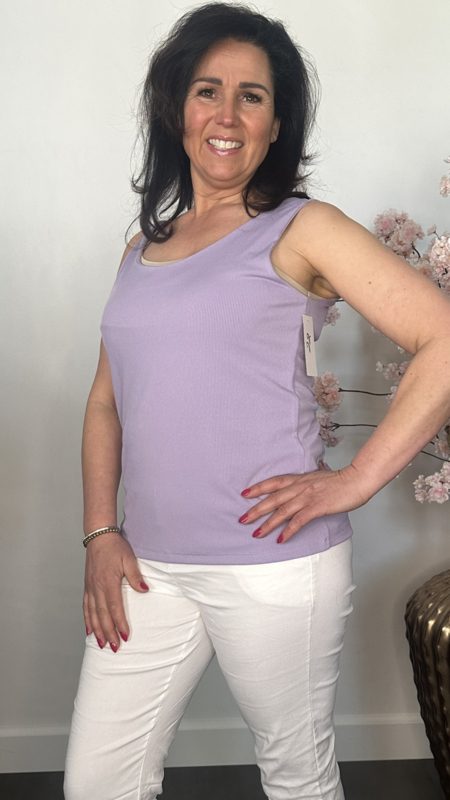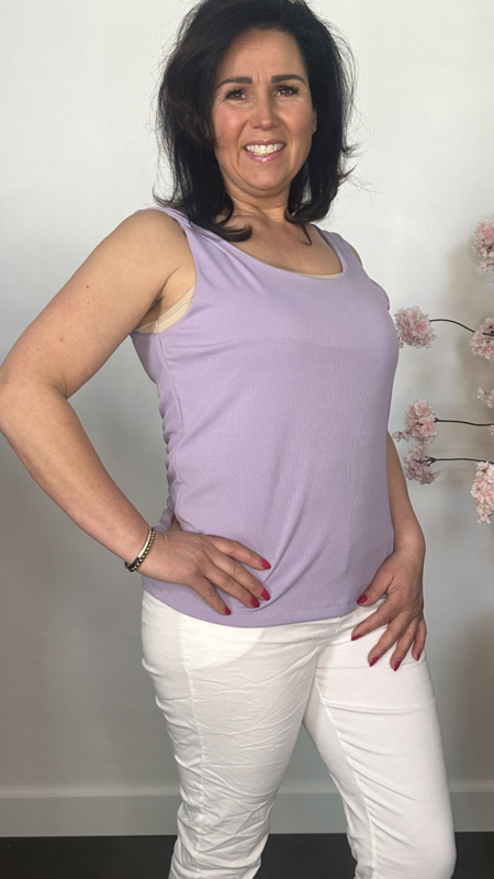 Hemd met brede schouderbanden gemaakt van soepele gladde ribbel stretch stof. De bovenkant is voor en achter gevoerd.