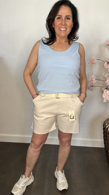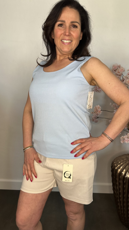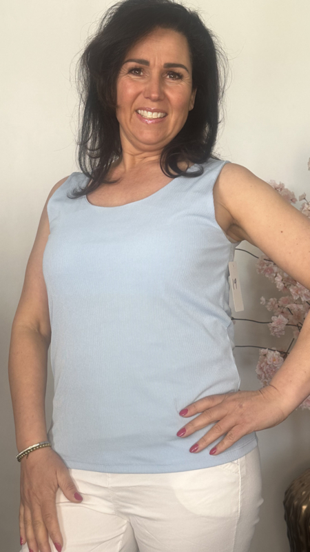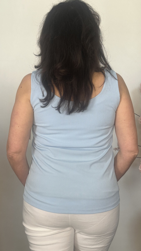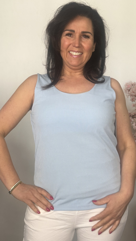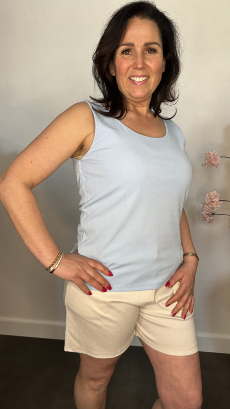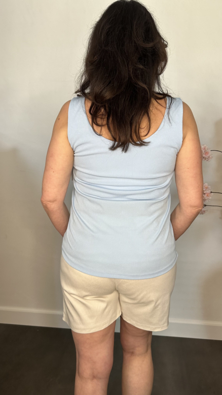 Hemd met brede schouderbanden gemaakt van soepele gladde ribbel stretch stof. De bovenkant is voor en achter gevoerd.