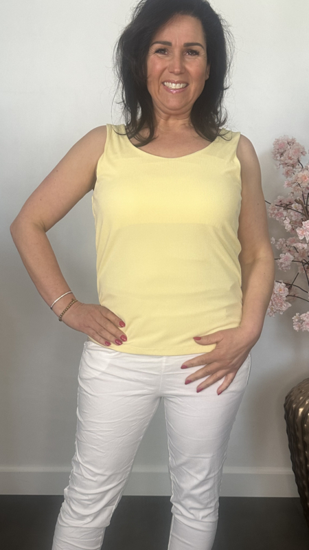 Hemd met brede schouderbanden gemaakt van soepele gladde ribbel stretch stof. De bovenkant is voor en achter gevoerd.