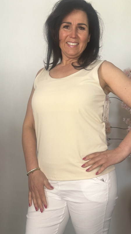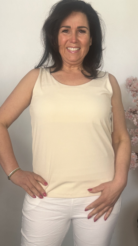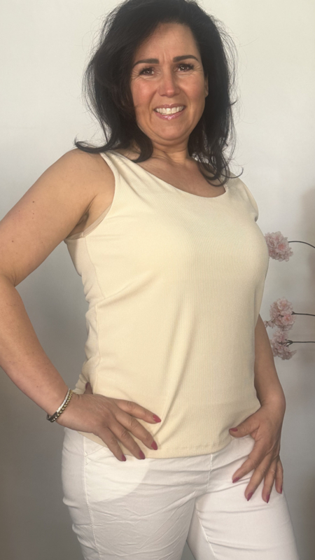 Hemd met brede schouderband ribbel Beige/ Zand
