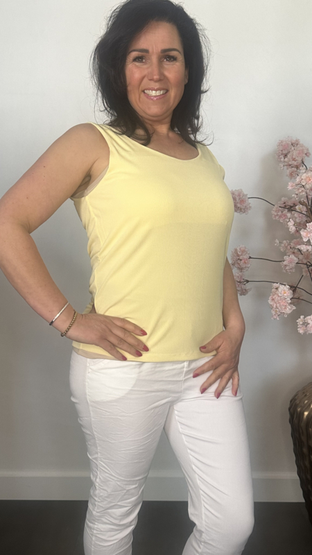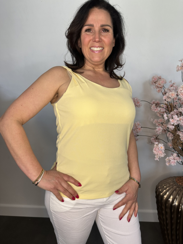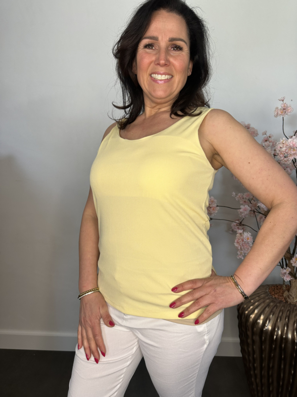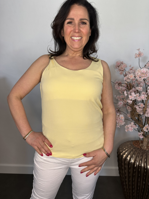 Hemd met brede schouderband ribbel Geel