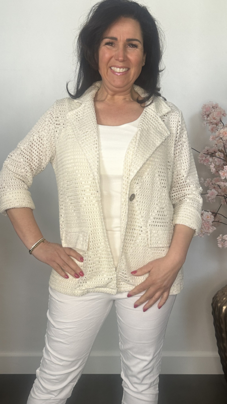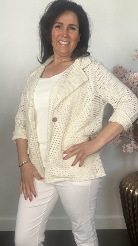 Artikelnummer: OGB ecruStijlvolle opengewerkte blazer met subtiele glans