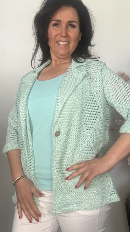 Artikelnummer: OGB mintStijlvolle opengewerkte blazer met subtiele glans