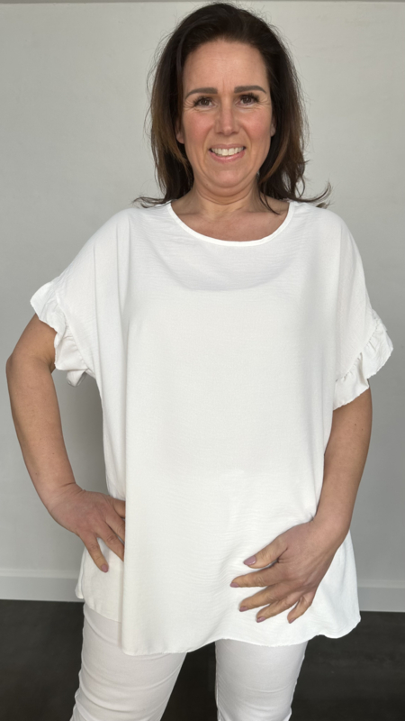 Top van soepel crepe stof (in luchtig dragend viscose) met ruche langs de korte mouw en GRATISketting.