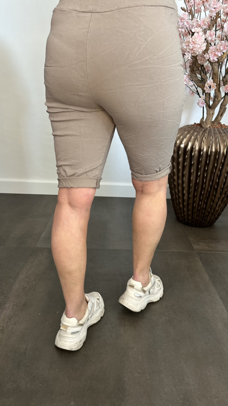 Korte joggjeans met een comfortabele fit en stevige stretch stof die mooi meebeweegt. De elastische tailleband met koord zorgt voor een perfecte pasvorm, terwijl de twee handige steekzakken ruimte bieden voor je essentials. Ideaal voor een casual en relaxte look.