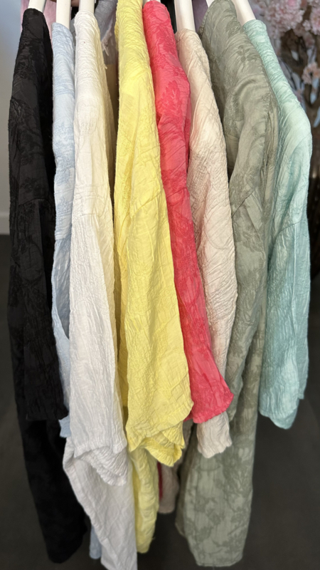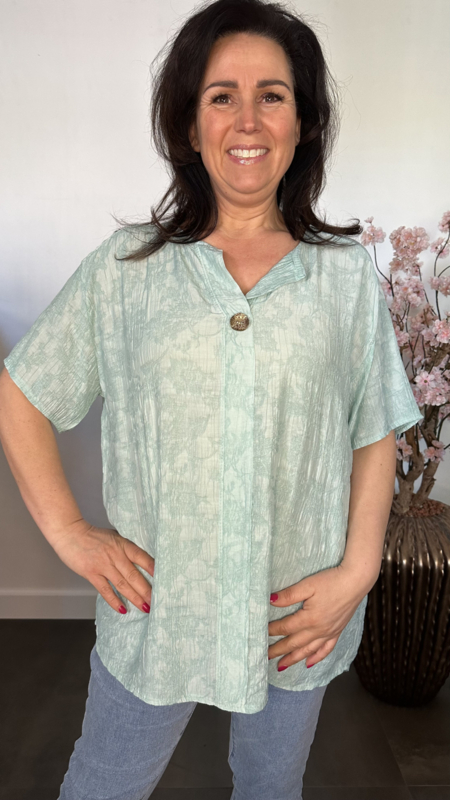 Deze blouse met satijnlook is een echte zomertopper. De subtiele bloemenstructuur in de stof geeft een elegante en vrouwelijke uitstraling. Dankzij de korte mouwen en het luchtige viscosemateriaal voelt de blouse heerlijk licht en comfortabel aan op warme dagen. Perfect om moeiteloos stijlvol voor de dag te komen, of je nu kiest voor een casual of meer geklede look.