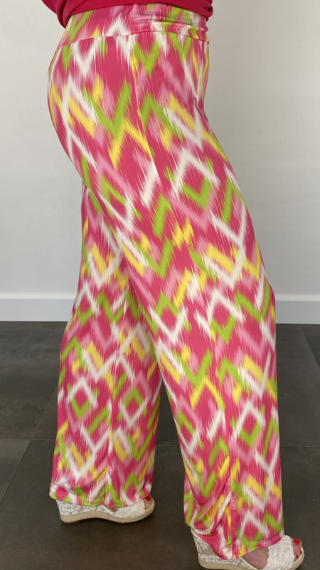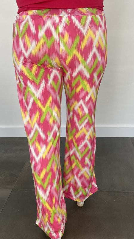Broek met wijde pijp zigzag fuchsia SALE