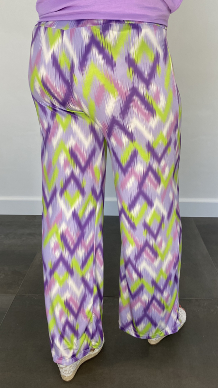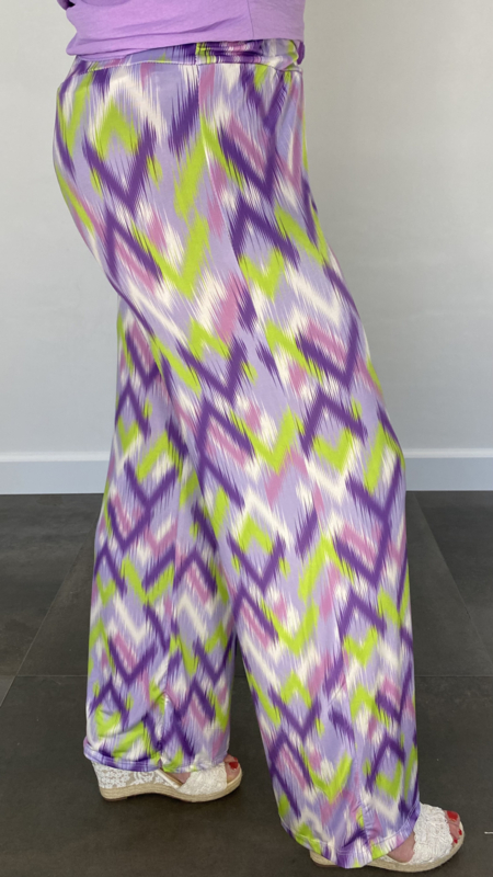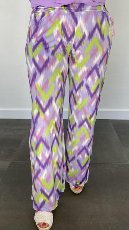 Broek met wijde pijp zigzag lila SALE