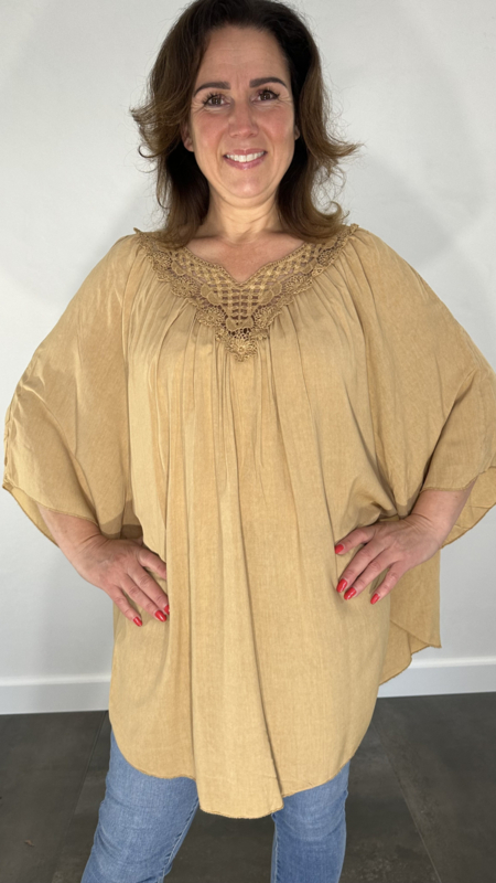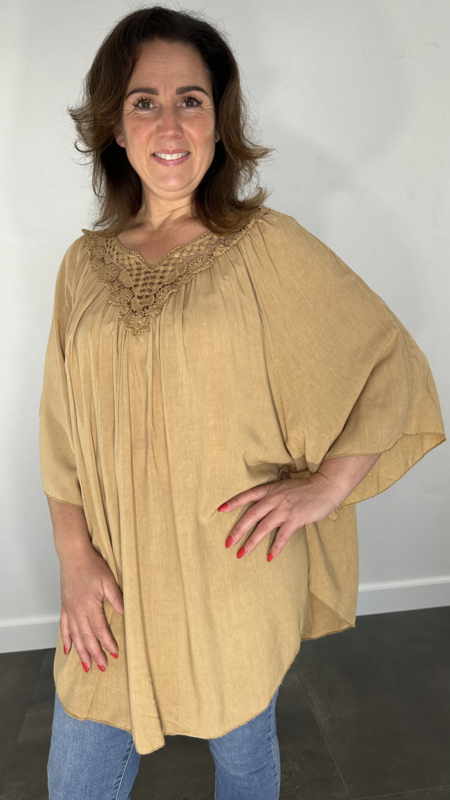 Tuniek/ blouse chantal met kant camel+SIZE SALE