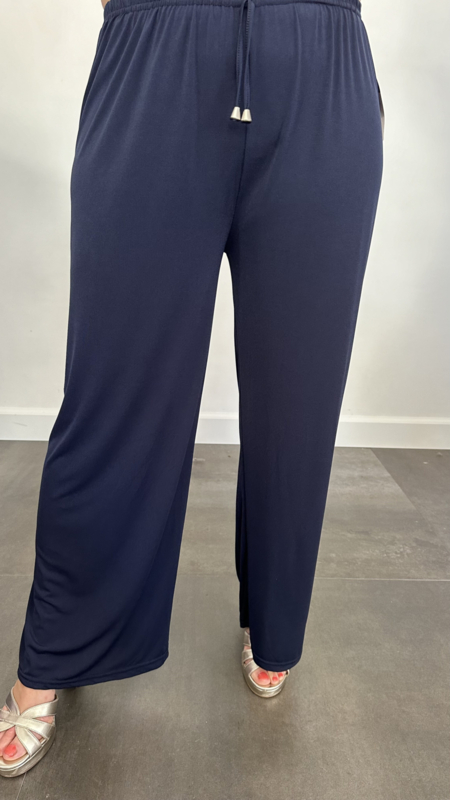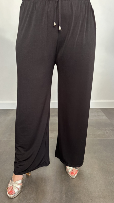 Palazzo broek met wijde pijpen en een elastische tailleband. Gemaakt van een soepele stretch stof