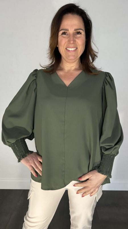 Stretch blouse travel retro flower groen SALEStretch blouse travel retro flower groen